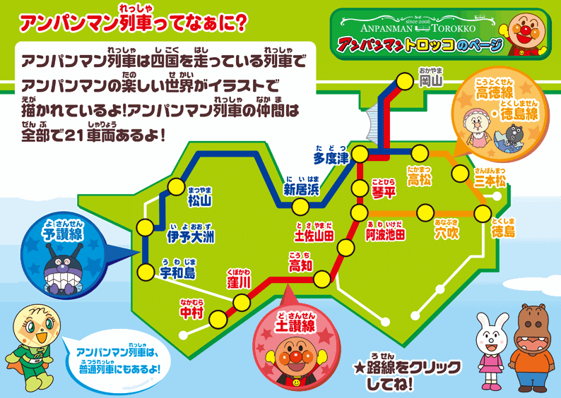 接著跳到麵包超人列車路線圖網頁。麵包超人列車只行駛以下路線: