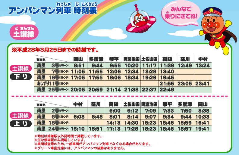 土讚線麵包超人列車時刻表