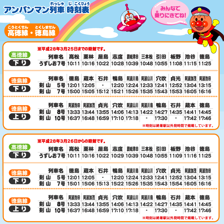 高德線.德島線麵包超人列車時刻表