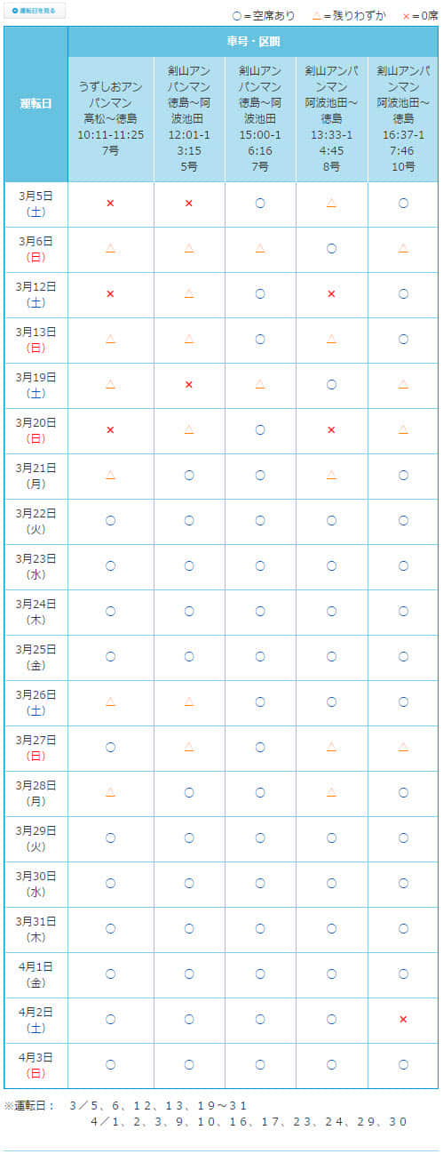 高德線.德島線空席情況