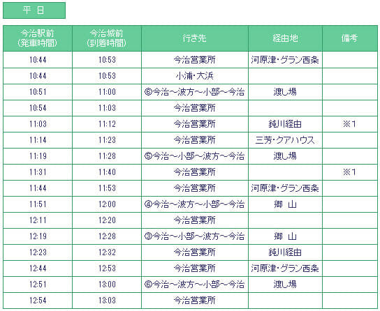瀬戸内運輸株式会社巴士時刻表