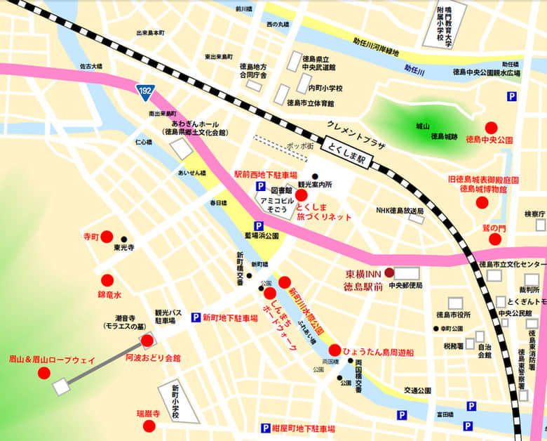 我們在德島下榻宿東橫 INN 德島站前, 住宿三晚。按地圖所示, 酒店離火車站不太遠, 估計步行十分鐘便可抵達。