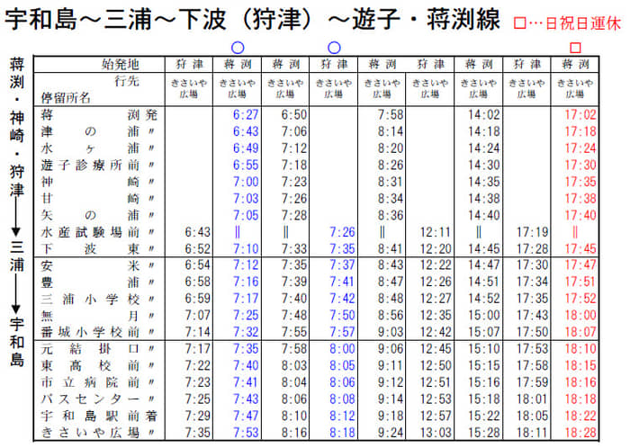 水ヶ浦 往 宇和島駅 巴士時刻表