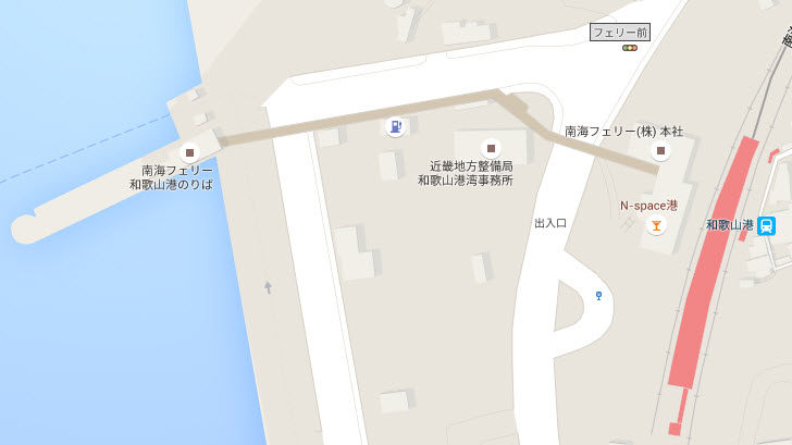 按地圖所示, 和歌山港巴士站離和歌山港南海碼頭不太遠, 就在和歌山港駅旁, 估計步行約五分鐘。