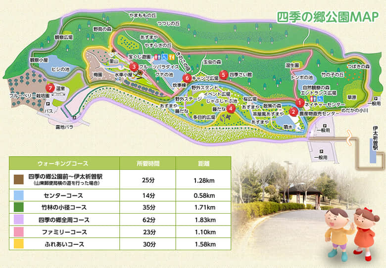 看看四季の郷公園遊覽地圖, 園區面積好像很大, 有以下七個主要景點: