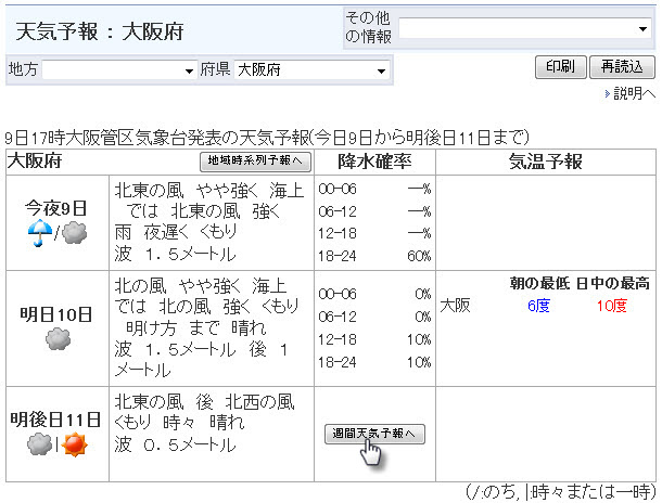 5. 如想知道未來一週的天氣預測, 按下「週間天気予報」按鈕。